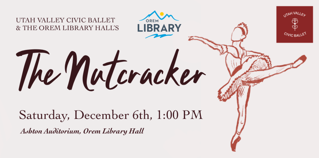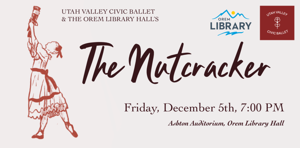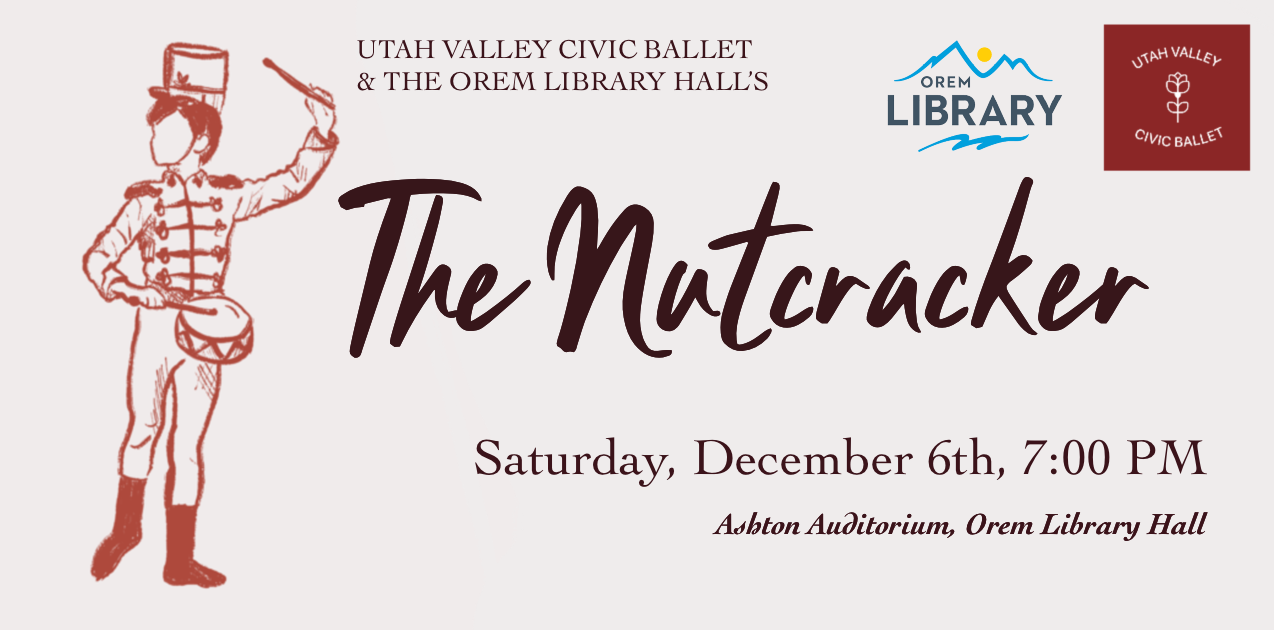 Join us for the magical Christmas classic The Nutcracker this winter season and get your tickets today! Utah Valley Civic Ballet and The Orem Library Hall are excited to produce this together to make this ballet come to life!