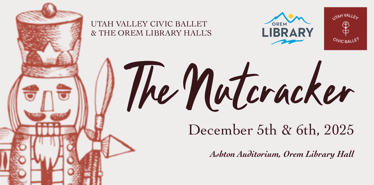 Ticket are available through TicketSpice through the Orem Public Library’s page. Links will become available by mid-day on October 1st, but will be available sooner on their website when you click on the image for “The Nucracker” in the image slideshow.